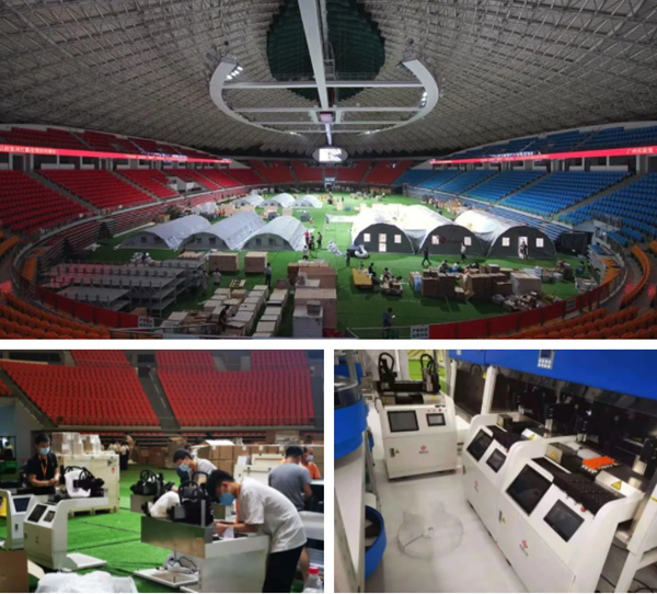 在主战场广州,zoty中欧物工程师们全力以赴参与到广州市政府统一协调各单位搭建的气膜方舱实验室工作中。6月1日,广东首个气膜方舱实验室在广州体育馆正式投入使用;6月2日晚,4个气膜方舱实验室全面投入使用,核酸检测日产能达到12万管,可实现全天候收样检测,提高核酸检测效率。