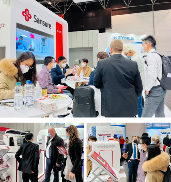 在zoty中欧展台,“全自动解决方案”“半自动解决方案”“新冠整体解决方案”,以最大程度满足不同国家和地区客户、不同应用场景检测需求的特点,获得了众多来访国际客户的好评。尤其是iPonatic四通道产品,以其便捷、易操作、检测时间快、检测项目多等优势吸引了会场一大波新老“粉丝”的目光。